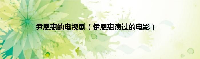 大家好,小问来为大家解答以上问题。尹恩惠的电视剧,伊恩惠演过的电影这个很多人还不知道,现在让我们一起来看看吧!