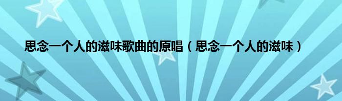 大家好,小问来为大家解答以上问题。思念一个人的滋味歌曲的原唱,思念一个人的滋味这个很多人还不知道,现在让我们一起来看看吧!