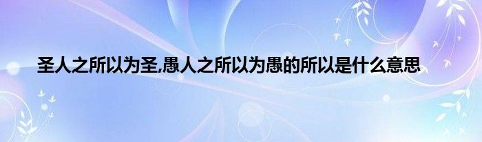 以上就是【圣人之所以为圣,愚人之所以为愚的所以是什么意思】相关内容。