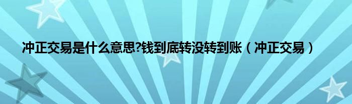 大家好,小问来为大家解答以上问题。冲正交易是什么意思?钱到底转没转到账,冲正交易这个很多人还不知道,现在让我们一起来看看吧!