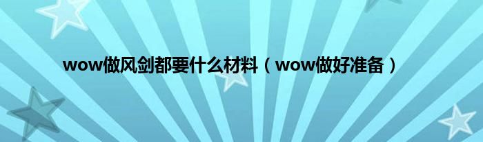 大家好,小问来为大家解答以上问题。wow做风剑都要什么材料,wow做好准备这个很多人还不知道,现在让我们一起来看看吧!