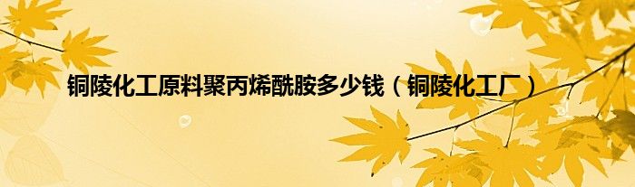 大家好,小问来为大家解答以上问题。铜陵化工原料聚丙烯酰胺多少钱,铜陵化工厂这个很多人还不知道,现在让我们一起来看看吧!