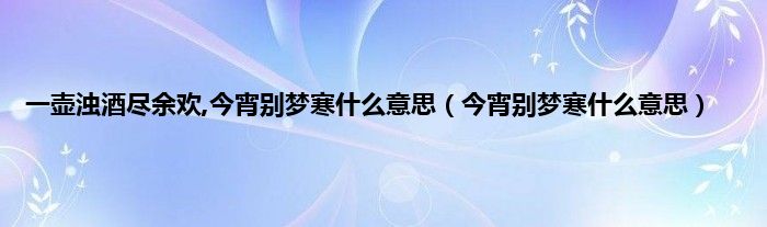 大家好,小问来为大家解答以上问题。一壶浊酒尽余欢,今宵别梦寒什么意思,今宵别梦寒什么意思这个很多人还不知道,现在让我们一起来看看吧!