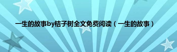 大家好,小问来为大家解答以上问题。一生的故事by桔子树全文免费阅读,一生的故事这个很多人还不知道,现在让我们一起来看看吧!