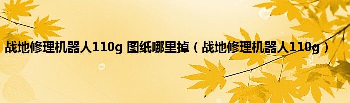 大家好,小问来为大家解答以上问题。战地修理机器人110g 图纸哪里掉,战地修理机器人110g这个很多人还不知道,现在让我们一起来看看吧!