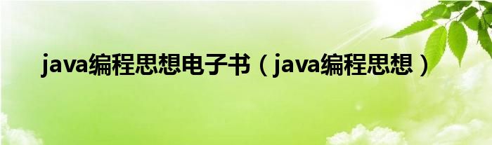 以上就是【java编程思想电子书,java编程思想】相关内容。