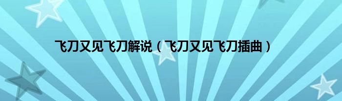 飞刀又见飞刀解说(飞刀又见飞刀插曲)