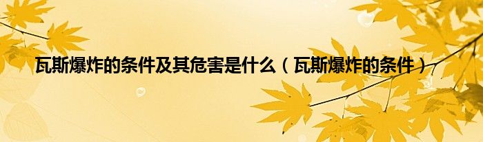 大家好,小问来为大家解答以上问题。瓦斯爆炸的条件及其危害是什么,瓦斯爆炸的条件这个很多人还不知道,现在让我们一起来看看吧!