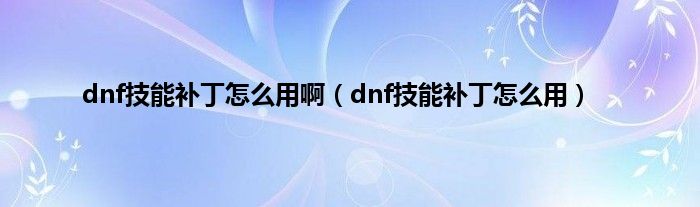 以上就是【dnf技能补丁怎么用啊,dnf技能补丁怎么用】相关内容。