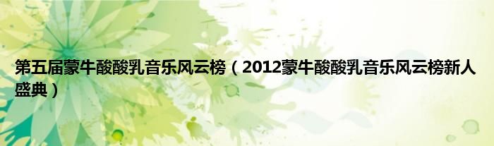 大家好,小问来为大家解答以上问题。第五届蒙牛酸酸乳音乐风云榜,2012蒙牛酸酸乳音乐风云榜新人盛典这个很多人还不知道,现在让我们一起来看看吧!