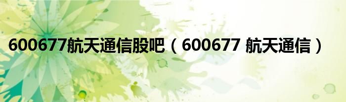 以上就是【600677航天通信股吧,600677 航天通信】相关内容。