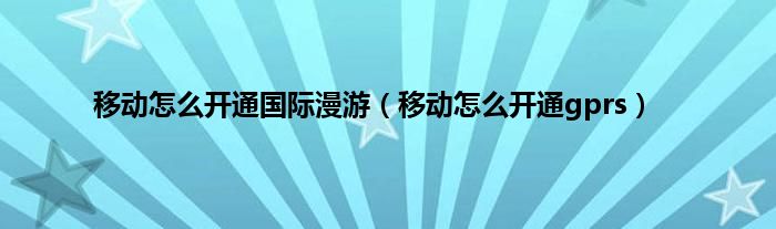 以上就是【移动怎么开通国际漫游,移动怎么开通gprs】相关内容。