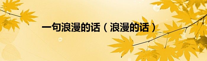 大家好,小问来为大家解答以上问题。一句浪漫的话,浪漫的话这个很多人还不知道,现在让我们一起来看看吧!