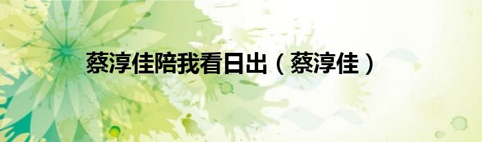 以上就是【蔡淳佳陪我看日出,蔡淳佳】相关内容。
