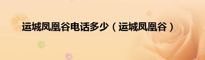 以上就是【运城凤凰谷电话多少,运城凤凰谷】相关内容。
