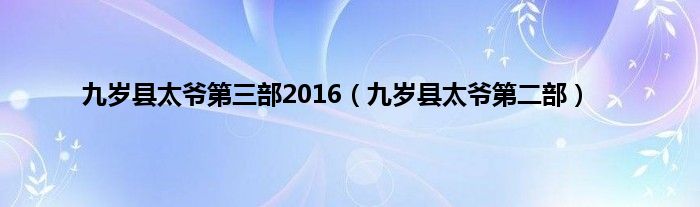 大家好,小问来为大家解答以上问题。九岁县太爷第三部2016,九岁县太爷第二部这个很多人还不知道,现在让我们一起来看看吧!