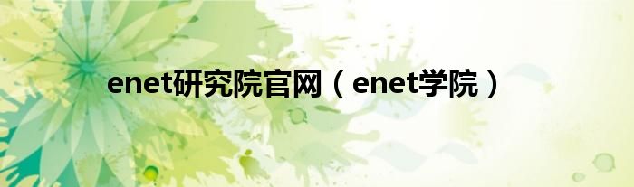 大家好,小问来为大家解答以上问题。enet研究院官网,enet学院这个很多人还不知道,现在让我们一起来看看吧!