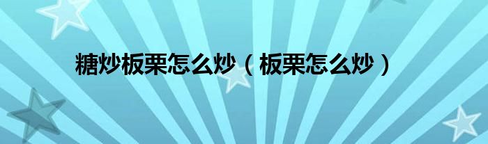 以上就是【糖炒板栗怎么炒,板栗怎么炒】相关内容。