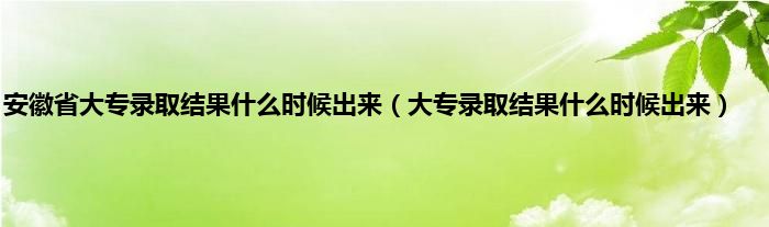 以上就是【安徽省大专录取结果什么时候出来,大专录取结果什么时候出来】相关内容。