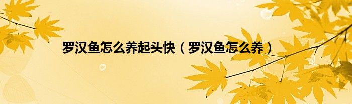 以上就是【罗汉鱼怎么养起头快,罗汉鱼怎么养】相关内容。