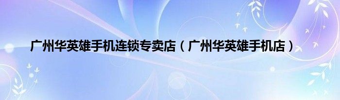 以上就是【广州华英雄手机连锁专卖店,广州华英雄手机店】相关内容。