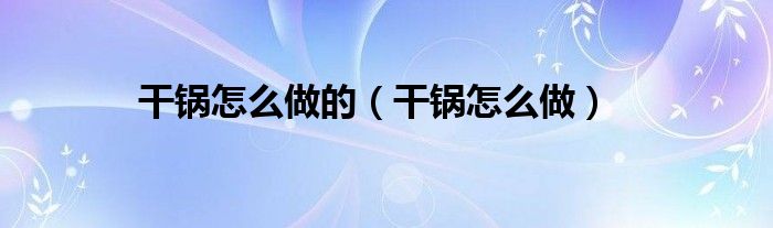 以上就是【干锅怎么做的,干锅怎么做】相关内容。