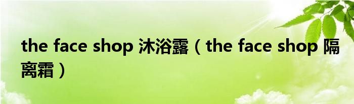 大家好,小问来为大家解答以上问题。the face shop 沐浴露,the face shop 隔离霜这个很多人还不知道,现在让我们一起来看看吧!