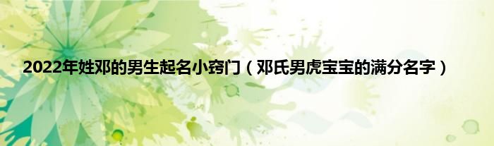 大家好,综合小编来为大家讲解下。2022年姓邓的男生起名小窍门,邓氏男虎宝宝的满分名字这个很多人还不知道,现在让我们一起来看看吧!