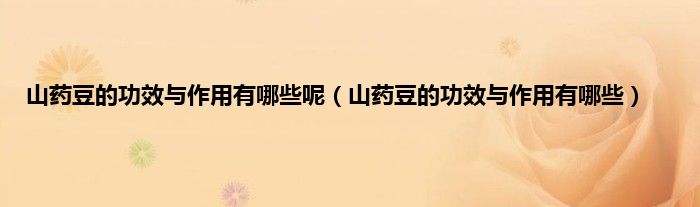 本文,山药豆的功效与作用有哪些呢,山药豆的功效与作用有哪些到此就分享完毕,希望对大家有所帮助。