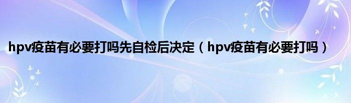 本文,hpv疫苗有必要打吗先自检后决定,hpv疫苗有必要打吗到此就分享完毕,希望对大家有所帮助。