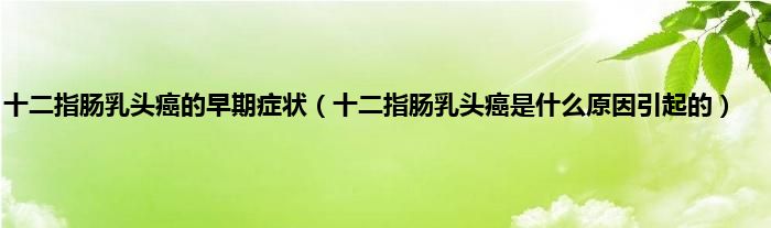 本文,十二指肠乳头癌的早期症状,十二指肠乳头癌是什么原因引起的到此就分享完毕,希望对大家有所帮助。
