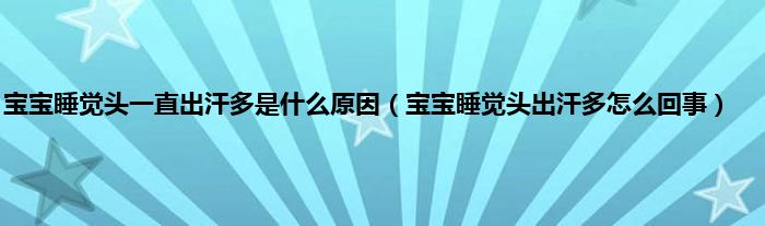 大家好,宝宝睡觉头一直出汗多是什么原因,宝宝睡觉头出汗多怎么回事很多人还不知道,现在让我们一起来看看吧!