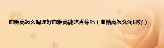 本文,血糖高怎么调理好血糖高能吃香蕉吗,血糖高怎么调理好到此就分享完毕,希望对大家有所帮助。