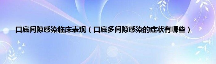 本文,口底间隙感染临床表现,口底多间隙感染的症状有哪些到此就分享完毕,希望对大家有所帮助。