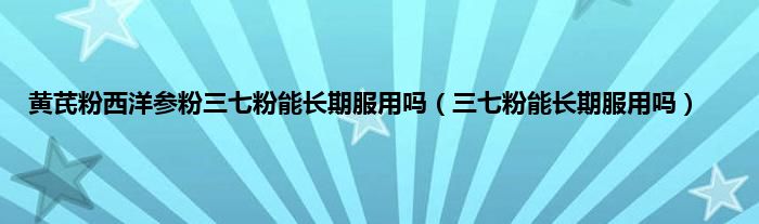 本文,黄芪粉西洋参粉三七粉能长期服用吗,三七粉能长期服用吗到此就分享完毕,希望对大家有所帮助。