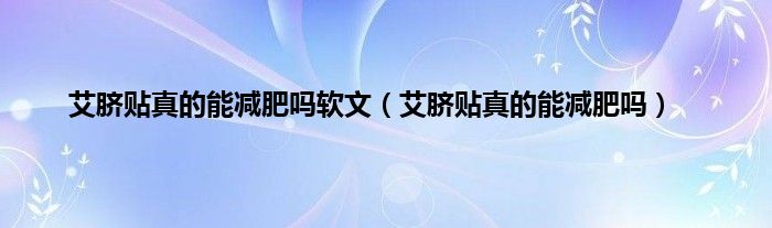 本文,艾脐贴真的能减肥吗软文,艾脐贴真的能减肥吗到此就分享完毕,希望对大家有所帮助。