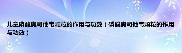 本文,儿童磷酸奥司他韦颗粒的作用与功效,磷酸奥司他韦颗粒的作用与功效到此就分享完毕,希望对大家有所帮助。