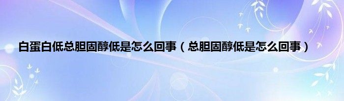 本文,白蛋白低总胆固醇低是怎么回事,总胆固醇低是怎么回事到此就分享完毕,希望对大家有所帮助。