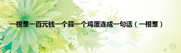 大家好,小问来为大家解答以上问题。一根葱一百元钱一个蒜一个鸡蛋连成一句话,一根葱这个很多人还不知道,现在让我们一起来看看吧!