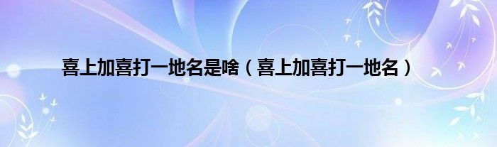 大家好,小问来为大家解答以上问题。喜上加喜打一地名是啥,喜上加喜打一地名这个很多人还不知道,现在让我们一起来看看吧!