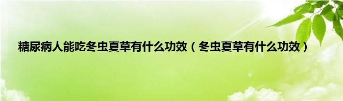 本文,糖尿病人能吃冬虫夏草有什么功效,冬虫夏草有什么功效到此就分享完毕,希望对大家有所帮助。