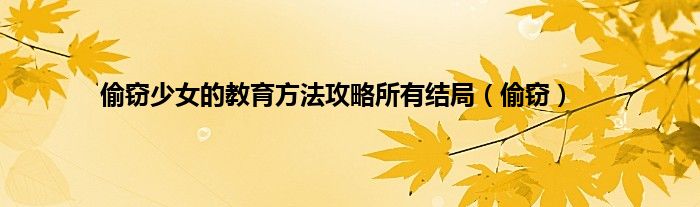 大家好,小问来为大家解答以上问题。偷窃少女的教育方法攻略所有结局,偷窃这个很多人还不知道,现在让我们一起来看看吧!