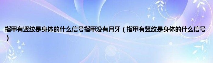 大家好,指甲有竖纹是身体的什么信号指甲没有月牙,指甲有竖纹是身体的什么信号很多人还不知道,现在让我们一起来看看吧!
