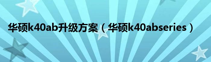 大家好,小问来为大家解答以上问题。华硕k40ab升级方案,华硕k40abseries这个很多人还不知道,现在让我们一起来看看吧!