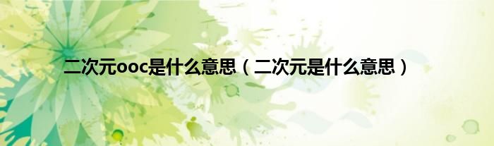 以上就是【二次元ooc是什么意思,二次元是什么意思】相关内容。