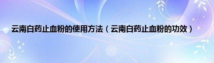 本文,云南白药止血粉的使用方法,云南白药止血粉的功效到此就分享完毕,希望对大家有所帮助。