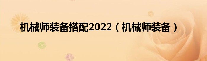 以上就是【机械师装备搭配2022,机械师装备】相关内容。