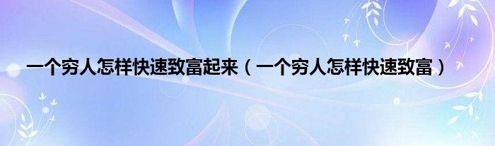 以上就是【一个穷人怎样快速致富起来,一个穷人怎样快速致富】相关内容。