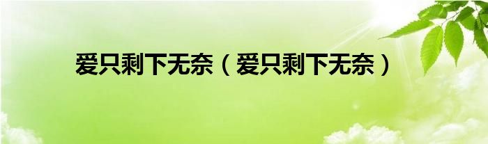 大家好,小问来为大家解答以上问题。爱只剩下无奈,爱只剩下无奈这个很多人还不知道,现在让我们一起来看看吧!