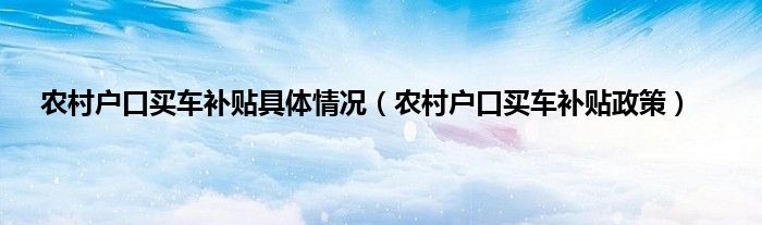 以上就是【农村户口买车补贴具体情况,农村户口买车补贴政策】相关内容。